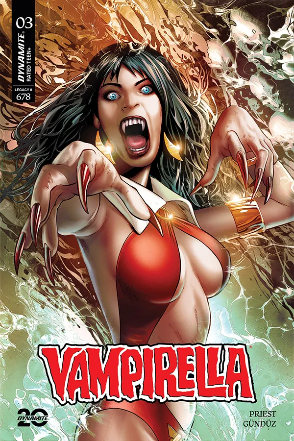 La engrasada maquinaria creativa de CHRISTOPHER PRIEST y ERGUN GUNDUZ sigue cobrando impulso en Vampirella #3, ¡alimentada por las sensuales portadas de LUCIO PARRILLO, GREG LAND, SHANNON MAER, ELIAS CHATZOUDIS y el cosplay de RACHEL HOLLON!
