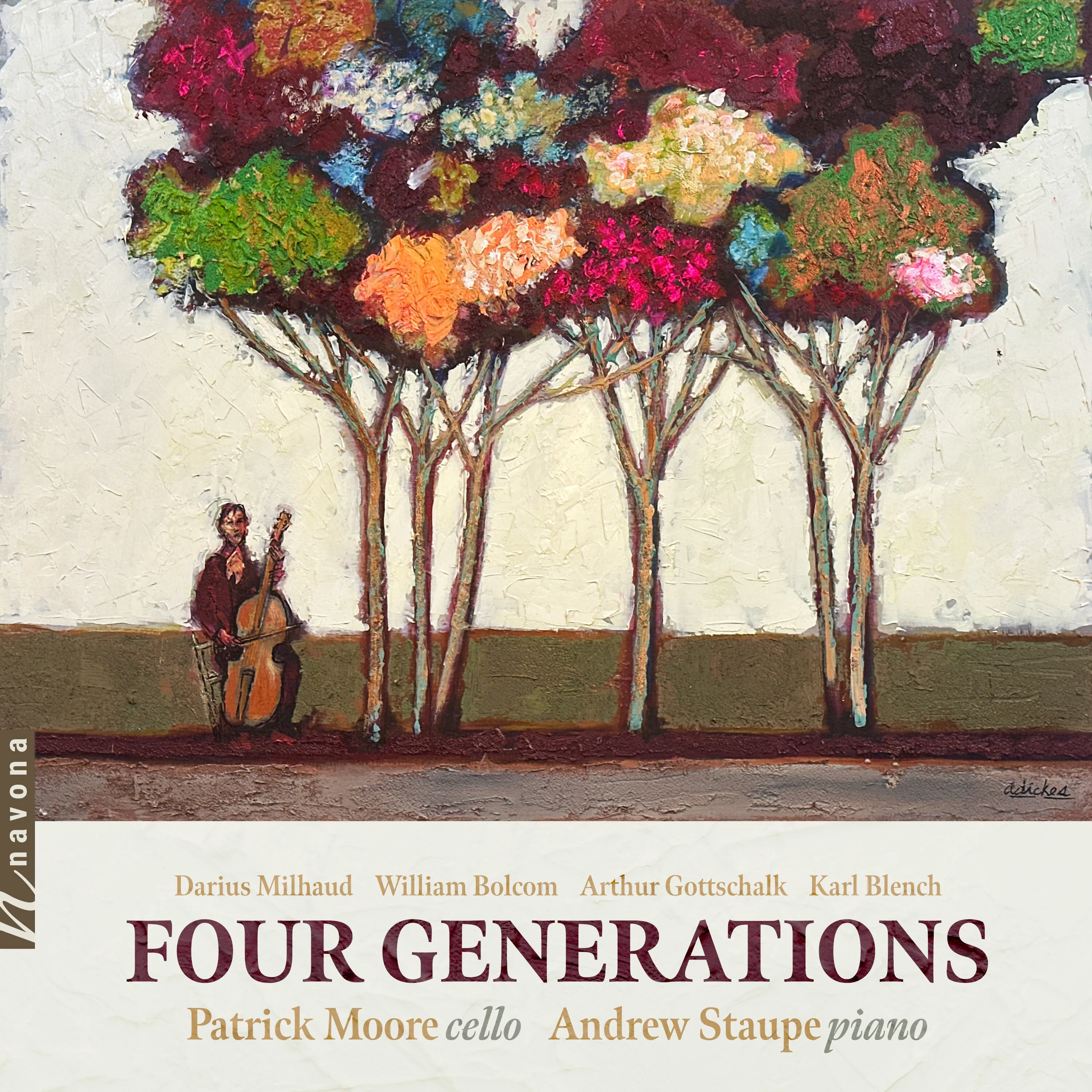FOUR GENERATIONS from Navona Records traces a powerful lineage of musical mentorship through works by Darius Milhaud, William Bolcom, Arthur Gottschalk, and Karl Blench. Showcasing the personal and artistic impact of teacher-student relationships, the album features emotionally resonant performances by cellist Patrick Moore and pianist Andrew Staupe. From Milhaud’s lyrical Elégie to Blench’s striking Dreams and Hallucinations, each piece reflects a distinct voice shaped by legacy and innovation. This compelling collection celebrates how mentorship fuels creativity and continuity in classical music, demonstrated beautifully through four generations of artistic evolution.