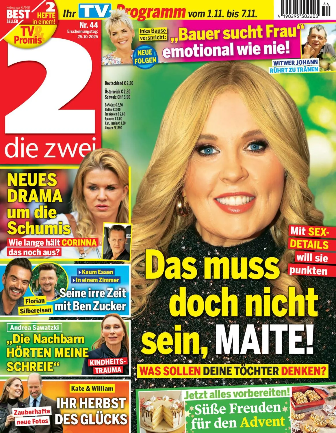 Deutschland einmalige Kombination von Stars und TV-Programm. Die 2 berichtet von den Lieblingen des Fernsehens, den Promis aus Show-Biz und Gesellschaft und den royalen Mitgliedern weltweit. Die 2 hat das aktuellste Programm aller TV Titel Deutschlands und präsentiert dies für über 40 Sender. Abgerundet wird dieses Paket an Informationen mit Service-Elementen zu Gesundheit, Reise, Beauty und Food.