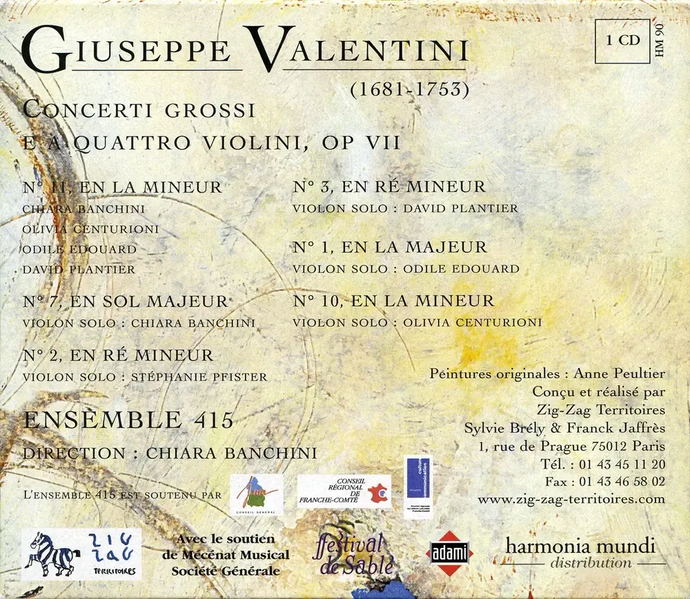 Chiara Banchini, Ensemble 415 - Valentini: Concerti grossi e a quattro violini Opus VII (2002)