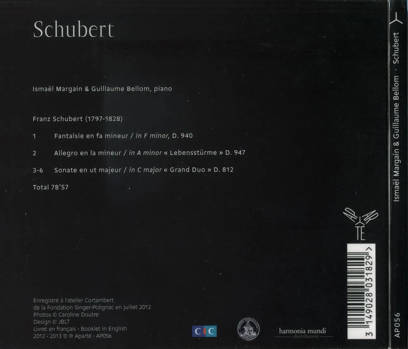 'Friendship and complicity' could have been the title of this recording, made by two fine young musicians, both aged only 20. Ismaël Margain (prize-winner in the Long-Thibaud competition 2012) and Guillaume Bellom (piano prize, Besançon Young Musicians competition 2008) illustrate the intimacy and the close sharing of musical pleasure that are major features of Schubert's piano duets.