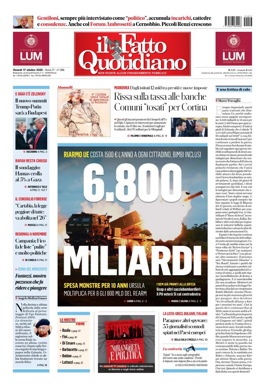 Il Fatto Quotidiano - 17 Ottobre 2025