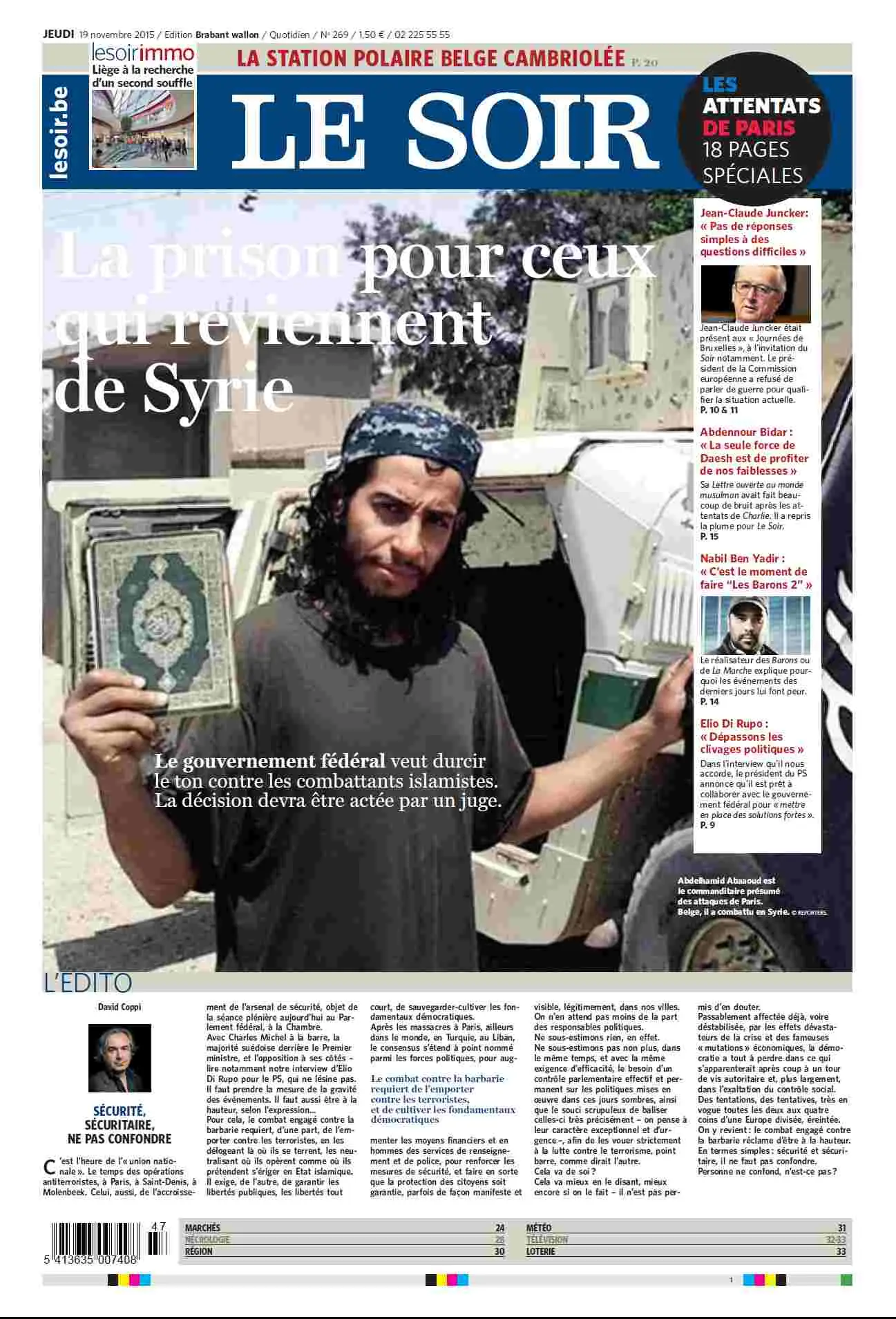 Le Soir (19 - 11 - 2015)