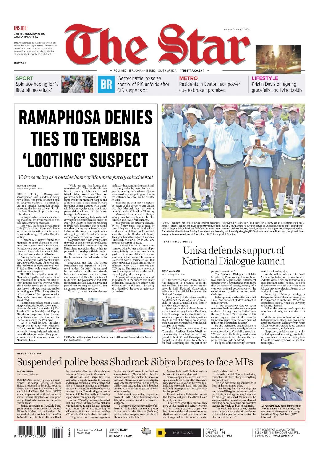 Johannesburg-based newsroom covering local, national and international news – with strong analysis, business reporting, sport and opinion.