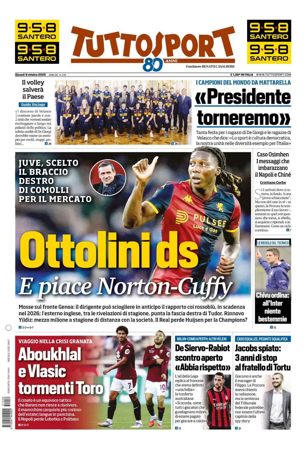 TuttoSport - 9 Ottobre 2025