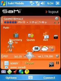 Saki Mobile for Pocket PC is a new free way to access exclusive content such as photos, videos, music, movies, news, weather, sports, stocks, email, IM and more.