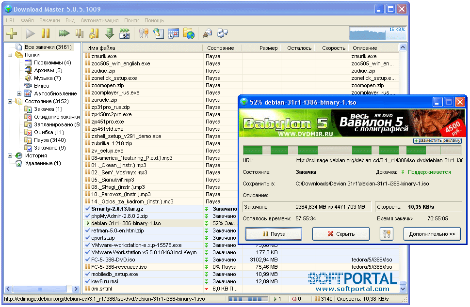 The acceleration is achieved by splitting a file being downloaded into several parts and downloading these parts at the same time.Download Master resumes downloads, broken due to lost connections, network problems, and computer shutdowns, from where they left off. Download Master supports download from HTTP and FTP servers, and can work through proxy-servers.