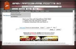 Rapidshare Points 2.0 | 16.6 MB With Easy Rapidshare Points 2.0 you can easily get rapidshare points to your premium account. With this software, YOU DONT HAVE TO LOGIN because we don't steak, phish, or hack anyones passwords. Just get your download link for the file you want to increase your points with, enter it, then keep downloading it.