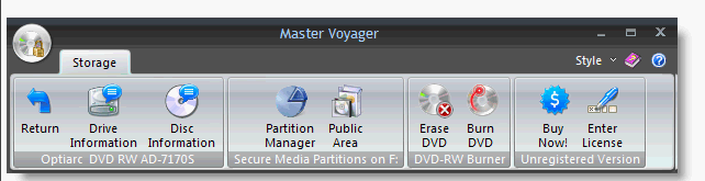 Master Voyager 1.27 | 9,11 MB Master Voyager is especially designed to create protected DVD/CD discs and USB Memory Sticks. It creates protected areas on the media and it is needed to enter password to see protected contents. In addition, all the protected Disc/USB Stick will be fully autonomous and will not require any special software installed on your PC.