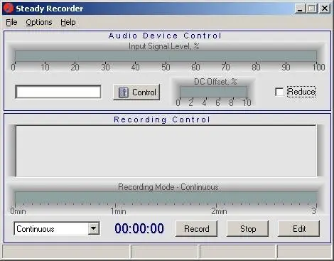 Steady recorder is a smart audio software with the powerful recording and selection tools. The program is well-suited for long time unattended recording and you don't miss the start of a song or sound. It can record any sound playing through or any signal connected to your sound card to mp3 and WAV format. To control the recording process Steady recorder displays a sound waveform and its spectrum in real-time. With the selection tool you can easy navigate throughout the recorded sound, play, select and save any portion of a waveform.