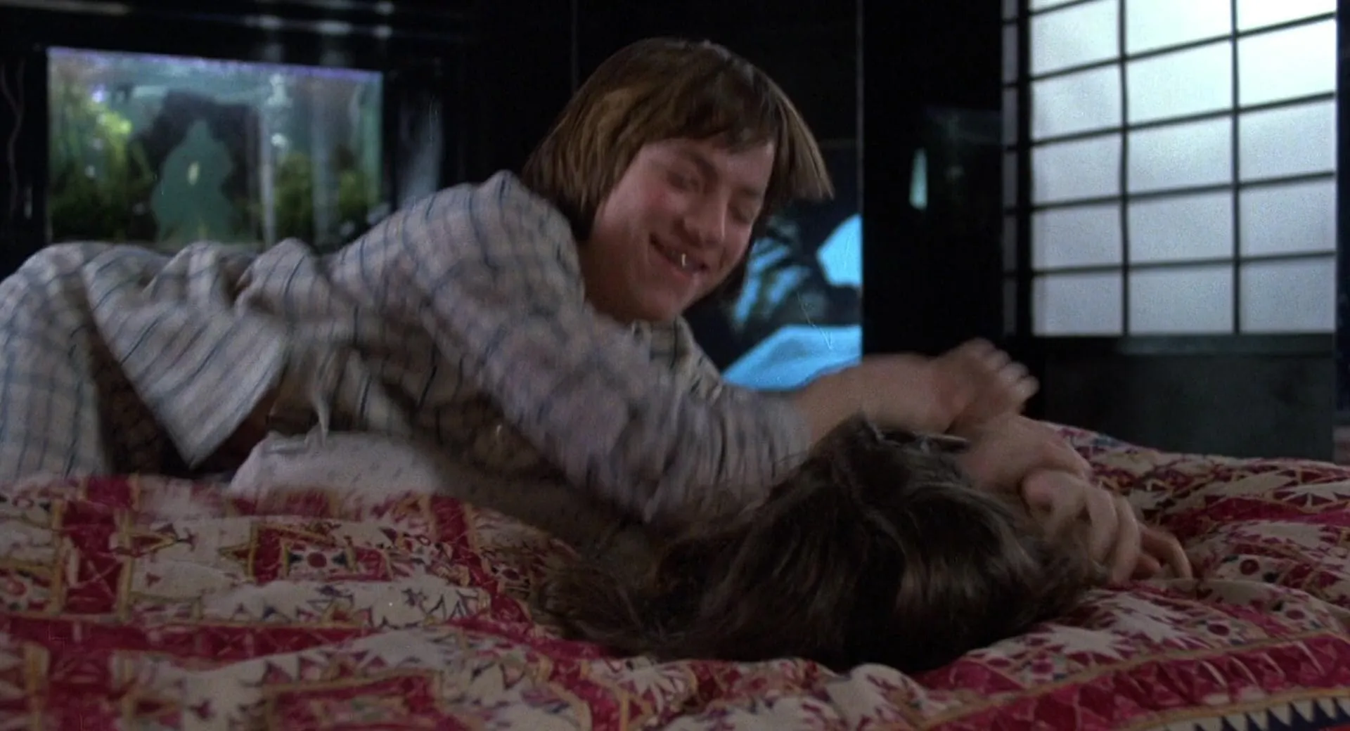 Two ultra-precocious Upper West Side 12-year-olds, Franny and Jamie, are best friends. Jamie, the "new boy" in town, has experienced his parents' divorce and guides his friend Franny in the art of surviving her own folks' imminent split. Franny senses the divorce because she has been secretly watching her father arrive home at 5:00 every morning and pathetically try to brush off (to his wife) and hide (from his daughter) the fact that he has been away all night. She is down in the dumps and finds a kindred spirit in her buddy Jamie, whose parents split up long ago. He points out the advantages of being a "child of divorce", and is so persuasive that he almost convinces himself as well as Franny. When Franny convinces her parents to let her go to a sleepover with Jamie, they explore their budding curiosity for the opposite sex. When Franny's mother finds the book "The Joy of Sex" in her daughter's bedroom and discovers that her daughter has deceived her, four frantic "adult" couples converge on the sleepover site–Jamie's father's swanky, fantastical bachelor pad–to catch the two in a compromising position. Ultimately, Jamie and Franny realize that, in order to survive the undeniable disadvantages of their parents' divorces, they must weather the hard times together as friends…if not more.