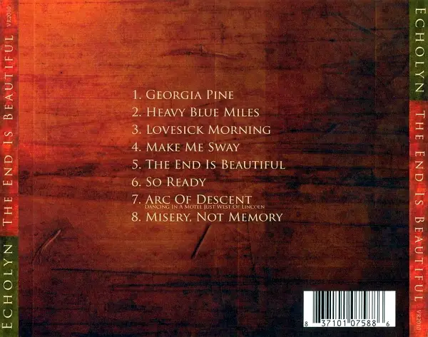 "The End is Beautiful" - released on August 23, 2005 - an urban, angular, rock masterpiece featuring echolyn's trademark vocal and instrumental interplay. "The End is Beautiful" has sometimes a broody jazzy atmosphere. But as a contrast there are also some King Crimson guitar parts.