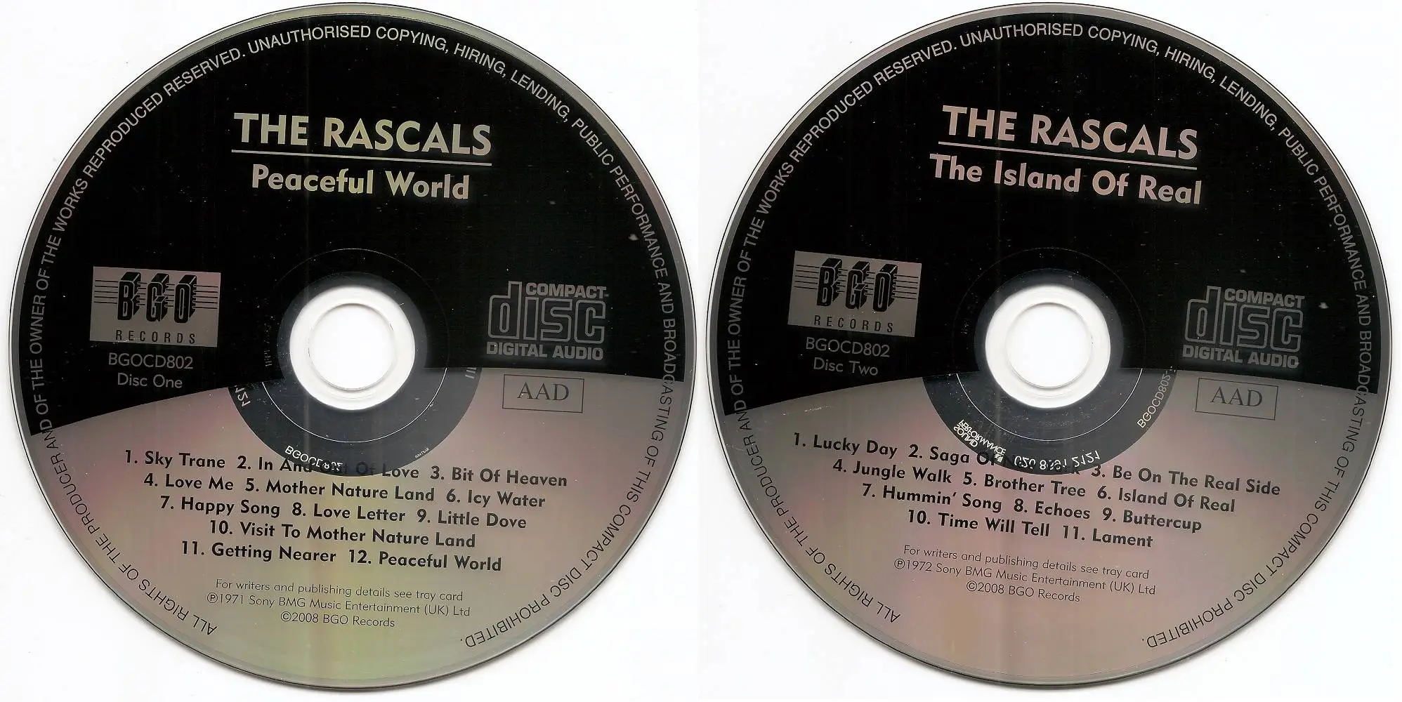 2008 digitally remastered two CD set containing a pair of albums from Felix Cavaliere and The Rascals: Peaceful World (1971) and Island of Real (1972), both originally released on Columbia Records. As the Young Rascals, the band had enormous singles chart success on Atlantic Records, and their move to Columbia was more album-orientated. These recordings, sadly, were to prove the last for the band, though founder Felix Cavaliere went on to a solo career. Comes housed in a slipcase with extensive liner notes. 25 tracks. BGO.