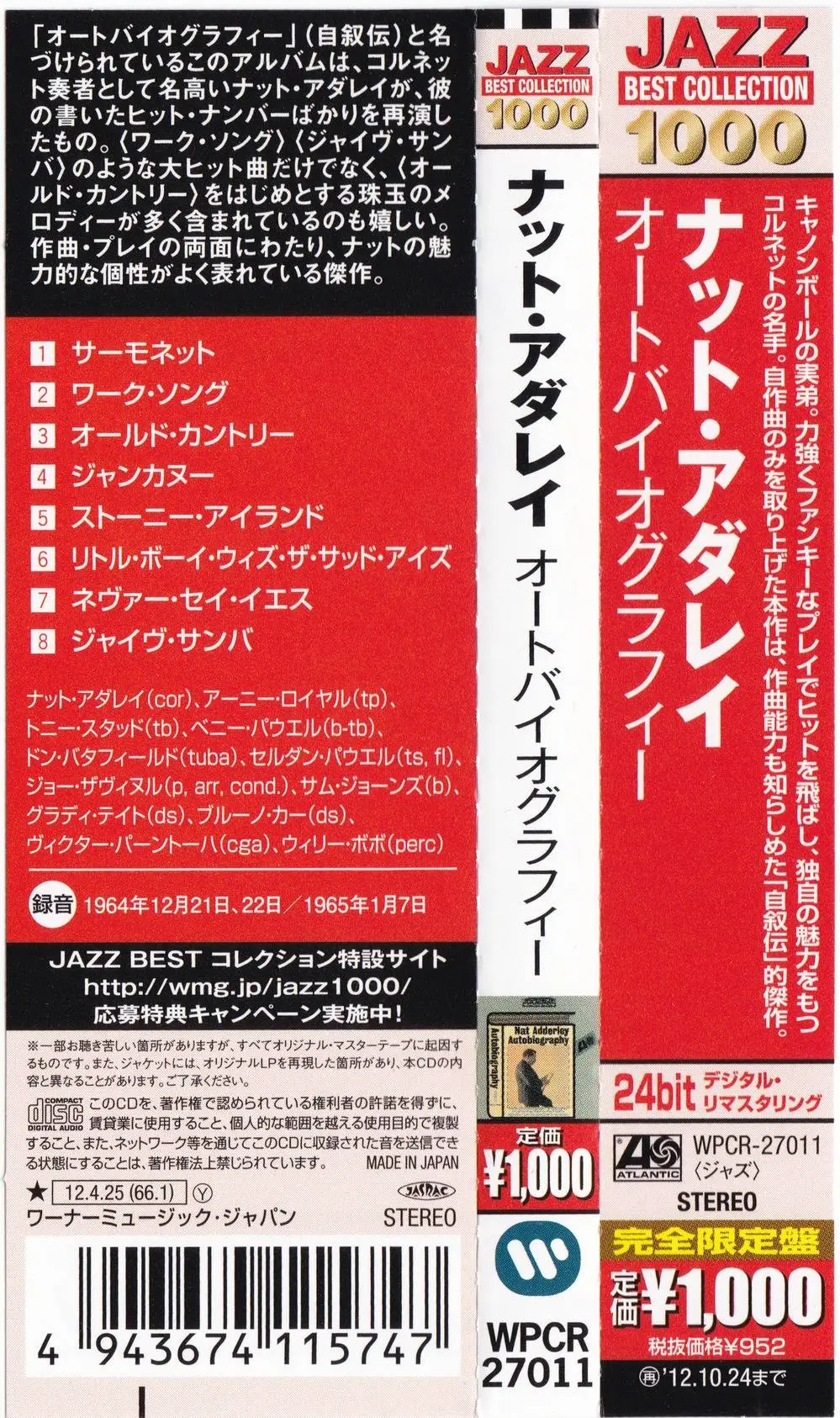 Nat Adderley - Autobiography (1966) {2012 Japan Jazz Best Collection 1000 Series 24bit WPCR-27011}