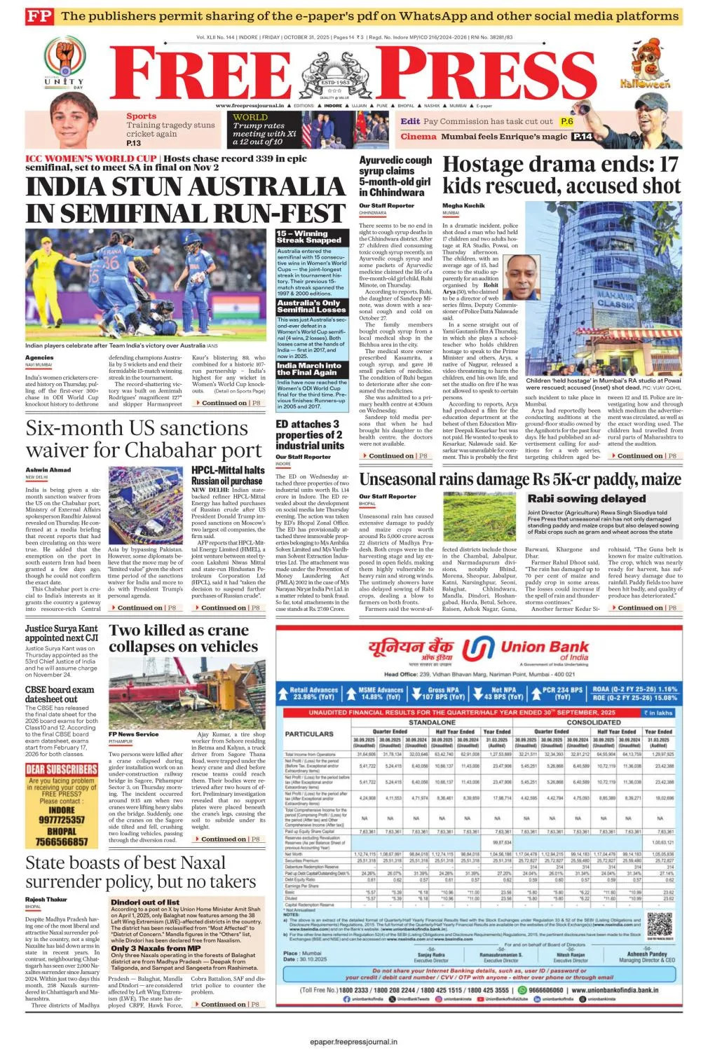 The Free Press Journal Bhopal - 31 October 2025